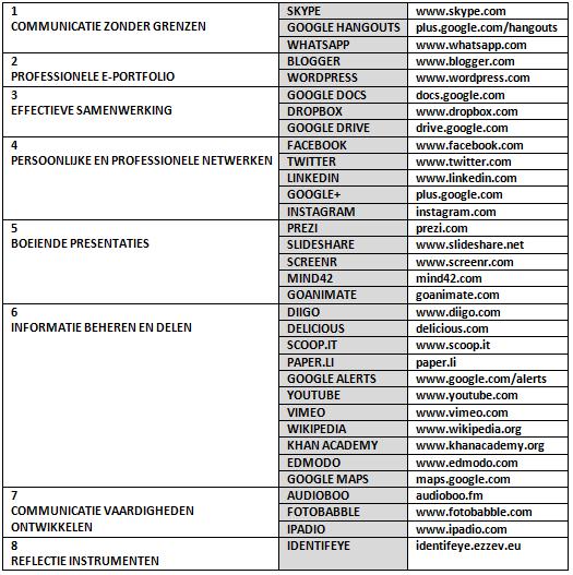 Het Web2Learn project nadert z’n einde. De zoektocht naar web 2.0 app good practices voor volwassenen heeft geleid naar het volgende rijtje van 33 apps, gesorteerd op categorie: